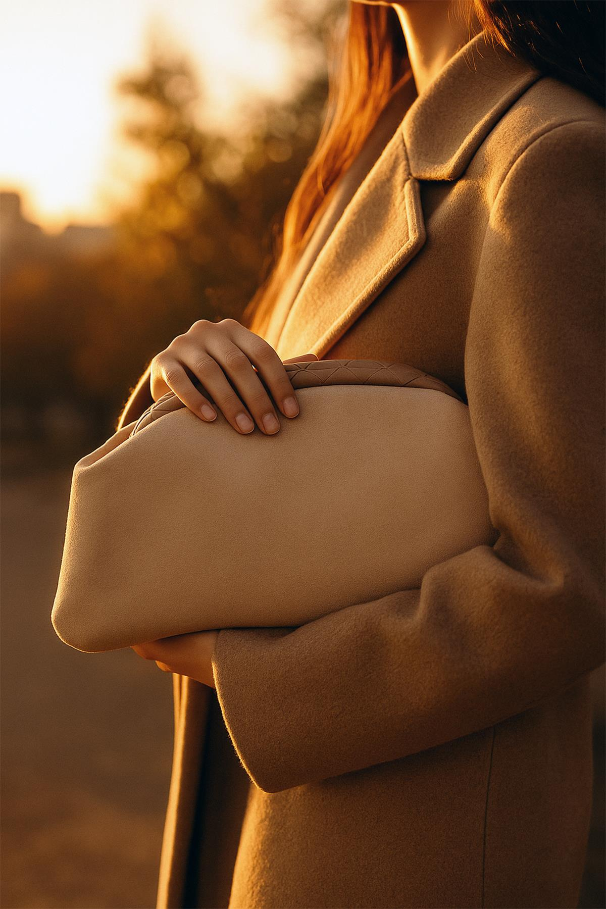 Bej renginin zamansız şıklığı ile zarafeti bir araya getiren Berlesi clutch çanta, modern kadının stilini tamamlamak için tasarlandı. Yumuşak dokulu süet yüzeyi ve kapitone deri üst detayıyla hem gündüz hem gece kombinlerine sofistike bir hava katıyor.