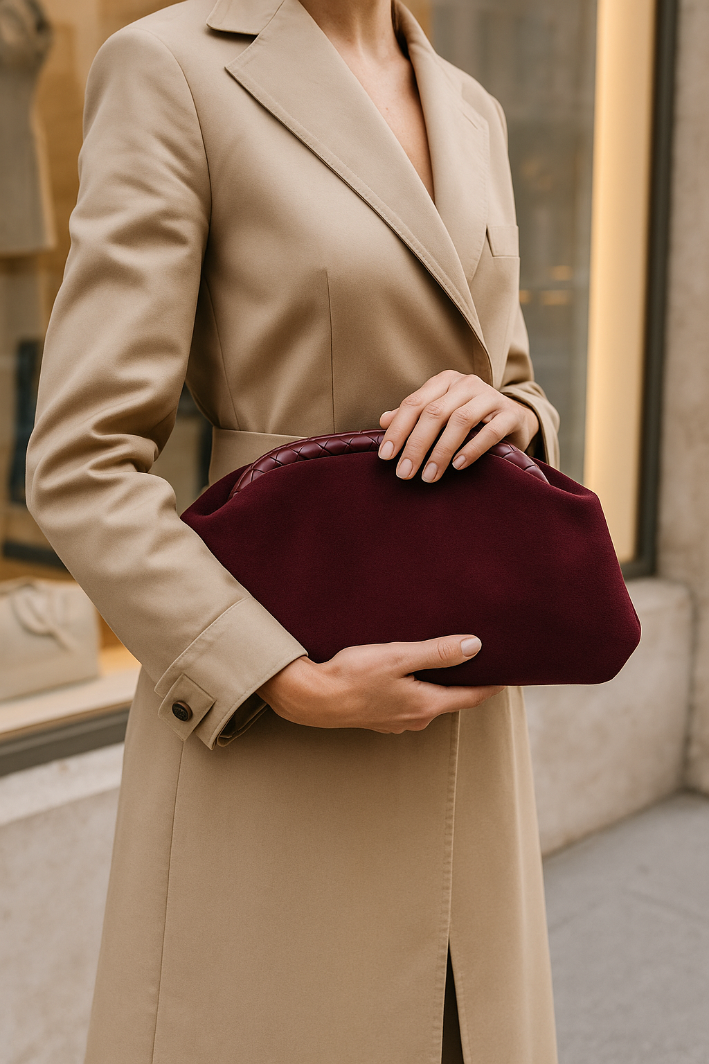 Bordo renginin zamansız şıklığı ile zarafeti bir araya getiren Berlesi clutch çanta, modern kadının stilini tamamlamak için tasarlandı. Yumuşak dokulu süet yüzeyi ve kapitone deri üst detayıyla hem gündüz hem gece kombinlerine sofistike bir hava katıyor.